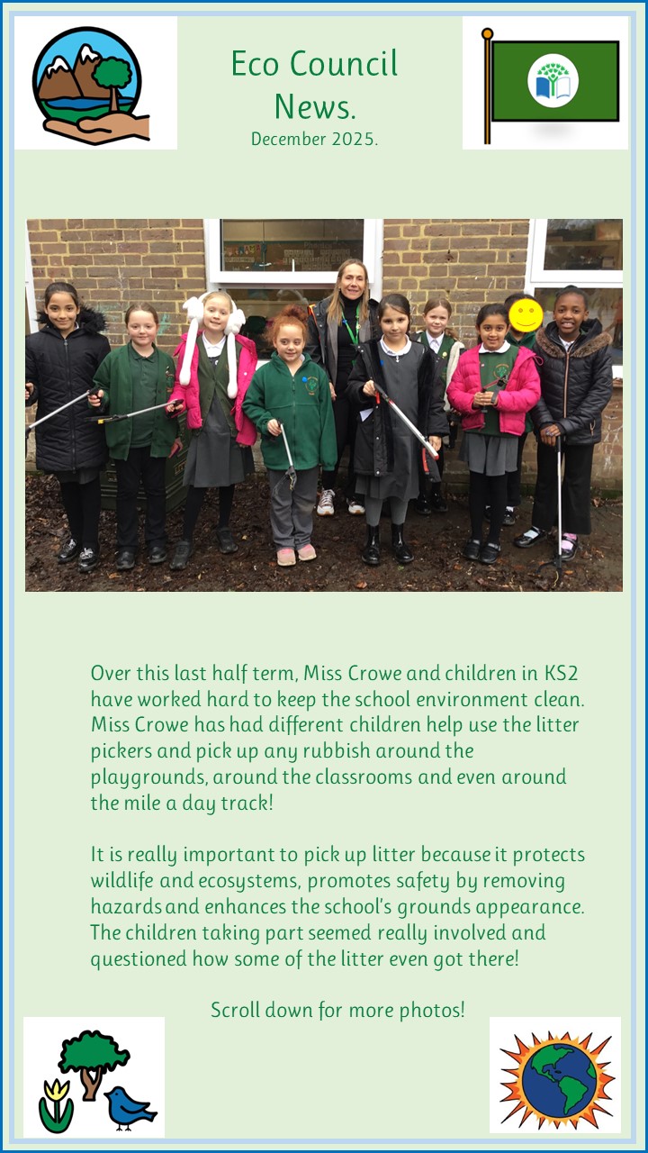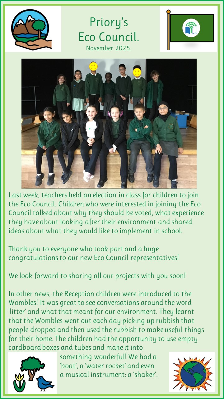 They consider ways of ensuring that our school makes good use of resources and take forward plans and activities that contribute to our sustainability efforts. They listen to ideas from others and turn the best ones into real actions. They also encourage everyone around them to care of the planet.